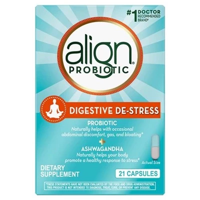 Align Probiotic Digestive DeStress 21 Capsules This formula helps soothe occasional digestive issues and the stress that can make those issues worse. When taken daily, Align fortifies your digestive system with healthy bacteria 24/7 while helping your mind and body destress.