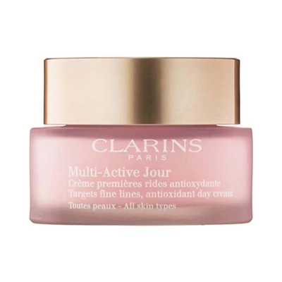 Clarins MultiActive Antioxidant Day Cream All Skin Types 1.6oz / 50ml Clarins MultiActive Day Cream helps visibly minimize fine lines and boost radiance while fighting off the effects of daytime stress so your skin glows. Encapsulated teasel extract delivers targeted revitalizing and antiaging action where your skin needs it most. Myrothamnus extract visibly smoothes, tones and destresses skin.