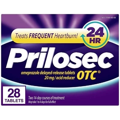 Prilosec OTC 24 Hour Acid Reducer 28 Tablets Did you know Prilosec OTCs Omeprazole can stop frequent heartburn before it begins? With one Prilosec OTC Omeprazole 20mg pill each day, you can be free from frequent heartburn for 24 hours. Heartburn happens when stomach acid refluxes into the esophagus. Prilosec OTC is a proton pump inhibitor PPI that can block heartburn at the source, so you dont get heartburn in the first place. Prilosec OTCs delayedrelease formula helps it pass through the tough stomach acid, turning down acid production.