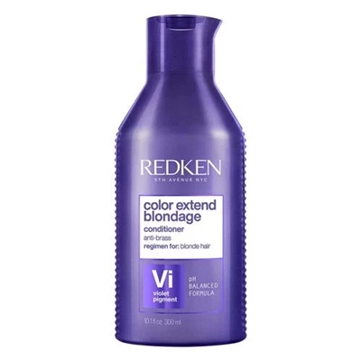 Redken Color Extend Blondage Conditioner 10.1oz / 300ml Redken Color Extend Blondage Conditioner is a colordepositing and protecting purple conditioner and hair toner for blonde and highlighted hair. This conditioner features citric acid to strengthen and repair blonde hair from the core and pure violet purple pigments to remove unwanted brassiness to leave your blonde hair color cool and bright. This formula gently detangles, strengthens, and moisturizes in one step.