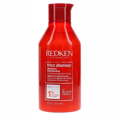 Redken Frizz Dismiss Shampoo 10.1oz / 300ml Redken Frizz Dismiss Shampoo is anti frizz shampoo with a gentle, sulfate and sodium chloride free formula. This shampoo is formulated with Redkens Smoothing Complex featuring sustainably sourced Babassu oil to tame frizzy hair, increase smoothness and enhance shine.