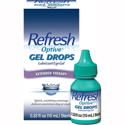 Refresh Optive Gel Drops Lubricant Eye Gel Extended Therapy 0.33oz / 10ml For the temporary relief of burning, irritation, and discomfort due to dryness of the eye or exposure to wind or sun. May be used as a protectant against further irritation.
