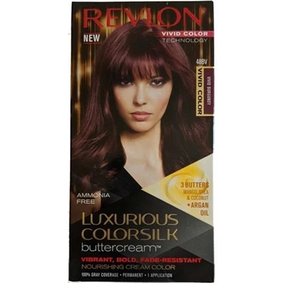 Revlon Vivid Color Luxurious Colorsilk Buttercream Hair Dye 48BV Vivid Burgundy Get the ultimate in rich, shiny, haircoddling color. ColorSilk Buttercream nourishes hair and covers grays for eight full weeks!